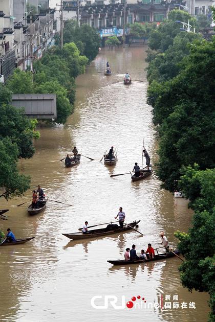 2011年6月20日,浙江蘭溪城里東門至南門路段水漫金山,市民坐船出行。水面上數(shù)只小木船構成城市版“江南水鄉(xiāng)”。 受6月以來的第四輪強降雨影響,浙江蘭溪2011年6月20日7點30分迎來了自1955年以來的最大洪峰,達33.73米,超過“6.16”洪峰水位33厘米。據(jù)蘭溪防汛辦提供的數(shù)據(jù),截至上午10點,洪峰水位33:68m,超危急水位2.68米,蘭溪抗洪全線告急。 據(jù)記者在蘭溪現(xiàn)場報告,蘭溪城市內澇嚴重,最深處積水已在1.5米以上,進城的幾個入口都已遭洪水淹沒,蘭溪城內已遭洪水圍困,目前交通已經(jīng)中斷,而蘭江干堤低處洪水已漫過干堤。 記者從蘭溪市防汛辦核實,蘭溪市內內澇嚴重,蘭溪干堤低處洪水確已漫過干堤。特別是香溪鎮(zhèn)、女埠街道、赤溪街道三個鄉(xiāng)鎮(zhèn)街道形勢最為嚴峻。目前,女埠片下方街道處干堤進水嚴重,下方街道居民住宅進水已半層左右,蘭溪市防指已命令巖山片、吳村片、匯潭前方片、女埠片、童家埠片、泉湖片區(qū)域內的群眾全部撤離。 目前,蘭溪市上下正嚴防死守抗此56年來最大洪峰。 約30萬群眾轉移 據(jù)初步統(tǒng)計,浙江省已經(jīng)累計投入搶險33.6萬人次,機械14375臺套、編織袋104.6萬條以及一批沙石料、木材、鋼材等搶險物資;轉移群眾29.2萬人,解救受困群眾1.88萬人. |